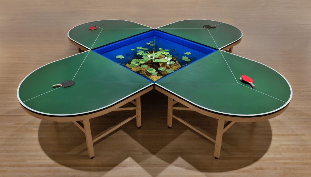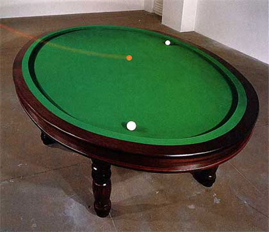 This chapter in particular made mention of an artist I have found very interesting to read about – Gabriel Orozco. There is a fascinating interview with the artist found here. That he combines two interests of mine – a playfulness and also philosophy, is fascinating! Games turn up as a theme here, not only in his process, and he confounds the rules of some conventional games such as ping pong, billiards, football and chess by transforming them in some way. He speaks very well about his thinking behind these transformational acts, and I have included some quotes below that I found particularly interesting.