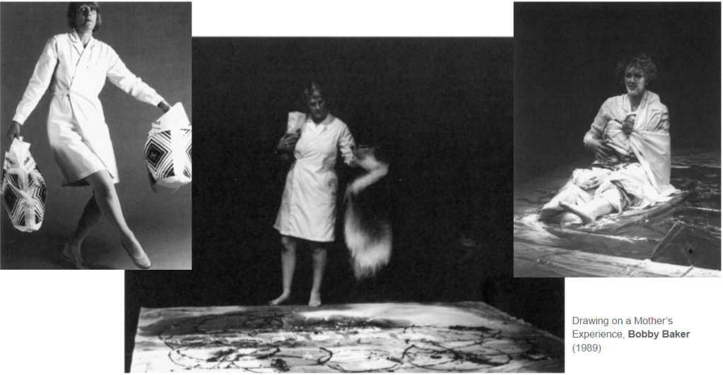 I also looked at artists who have used performance as the work itself, or in the creation of works, where abstract gestural mark-making has been utilised.