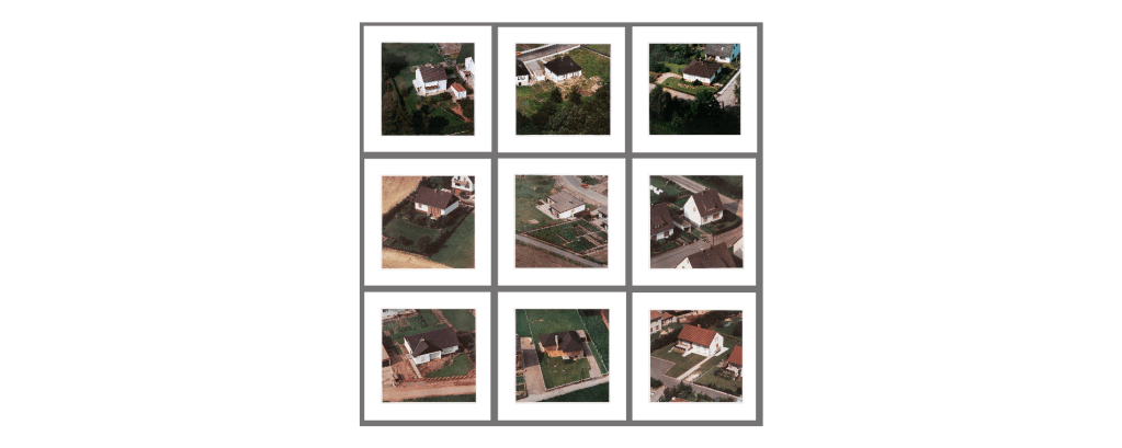 When we toured the Boros Collection during our trip, we were introduced to the work of Peter Piller, who works from an archive of collected photographs from print and digital media, and in this case from the collection of a home photography retailer operating before Google Maps (who took aerial photos of in residential areas to sell to the residents). One of the series from this collection that we saw comprised 9 photos with houses where the window blinds were shut.