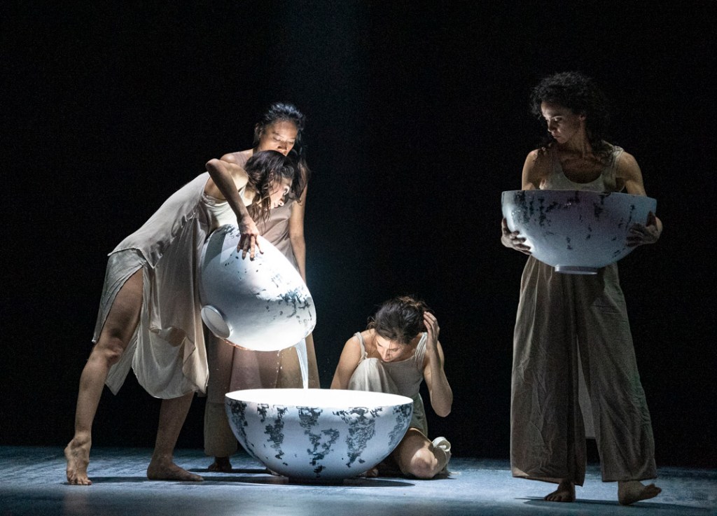 The group pieces were fascinating, though I found it more difficult to glean perhaps a clear expression in the Unda work, it seemed more of a narrative to me (around friendships forming, routine, death and loss). There was an interesting use of water in it – dripping from above into large washing bowls placed around the set. The finale of the piece involved the dancers ‘washing’ themselves and then splashing the water around using their hair and limbs. IT was quite interesting to see these precise movements interacting with the liquid.
