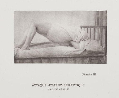 This photo of a woman demonstrating a ‘hysterical episode’, characterised by the arched back, was distributed for voyeuristic purposes in 1880