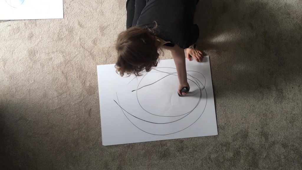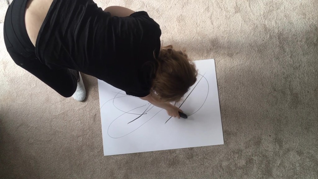I was keen to get started experimenting with linear gestural mark-marking. It was important for me to capture the process of this as potential starting points for performance too, but as I have been cautioned not to use the studio space in the university due to the corona virus shut down, I was presented with a challenge to make use of my home environment to do this in!