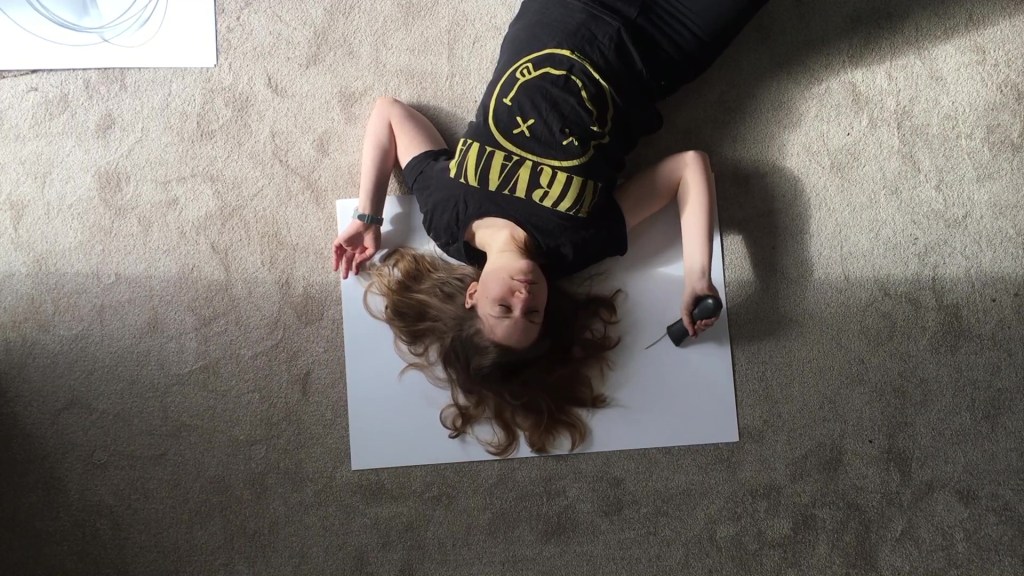 That my top rides up at the back in the video, revealing my lower back, was unintended, but is a curious effect. It highlights my vulnerability in this process, as well as being an unflattering view of my body. This harks back to my future self-portrait, which sought too to highlight and undermine notions of feminine beauty.