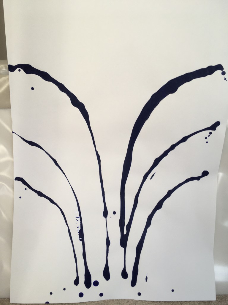 I like the near symmetry of this piece, and that the marks suggest a pattern or symbol of some form. It reminds me somewhat of rorschach ink blots in this way. But too the fluidity of the paint and the arching imply a spring or fountain of water for me. I was interested too by the concept of bodies of water in themselves as an action, having visited my local castle ruin in Berkhamsted on one of my daily walks.
