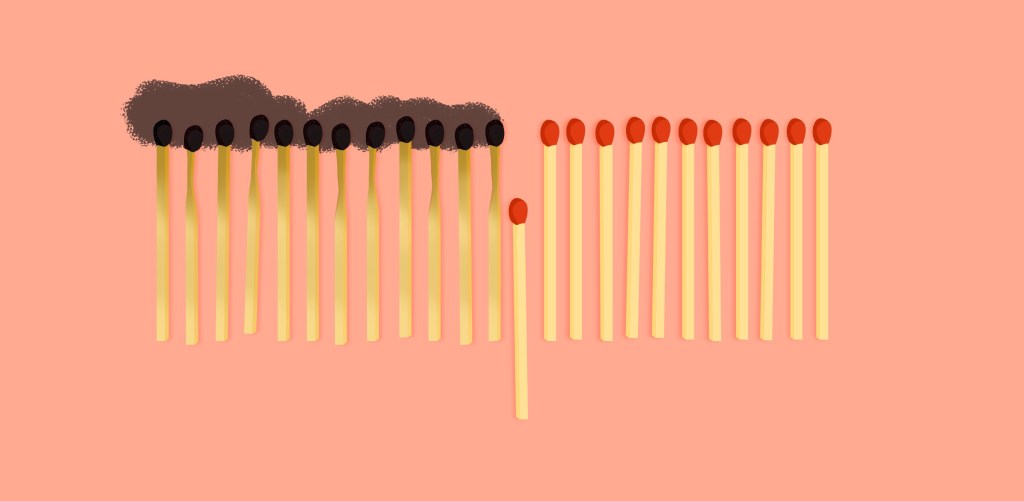 Many images/animations have been circulating online using this matches illustration for the importance of social distancing to prevent the virus spreading to others