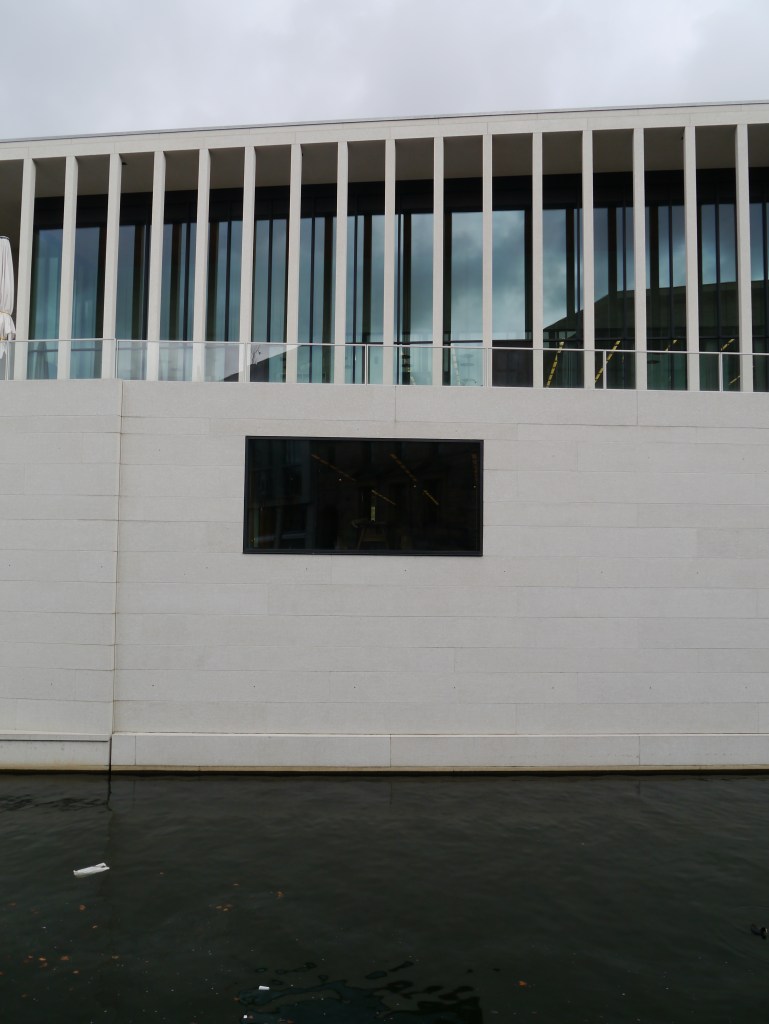 The reflective quality of glass in windows was apparently a central interest for Walter Gropius in the design of the Bauhaus school in Dessau, where he made use of spiegelglas (mirror glass) to enhance reflectivity, which we visited on our trip.