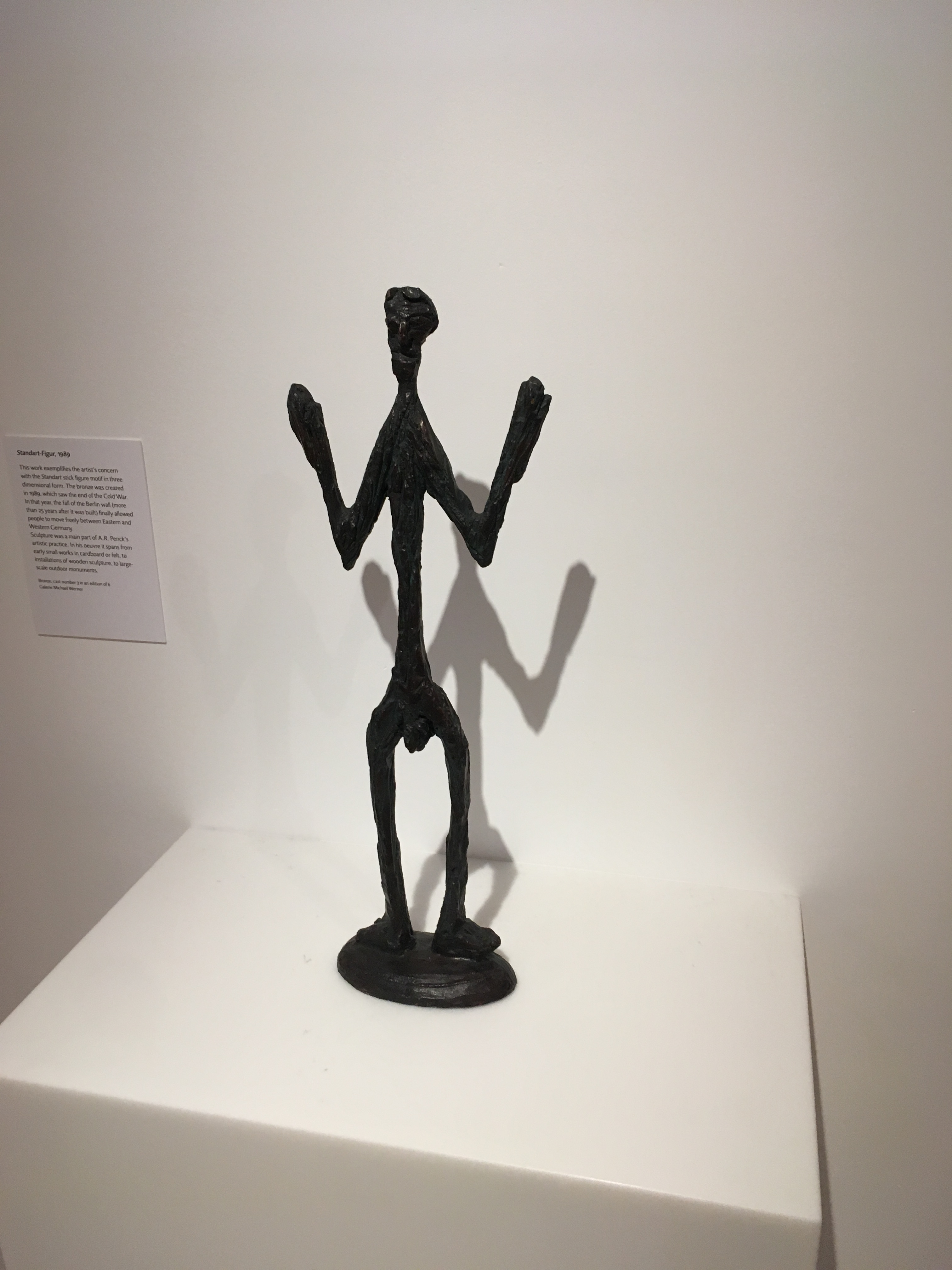 This exhibition focused on the development of his ‘Standart’ stick figures, which were used expressively as well as to form signs relating to the concept of man and social power systems. Often the Standart took on the form of a hunter, to play on the primal urges and timeless aggression of humans. Below we can see his exploration of this form expressively through various media (pencil sketch, printmaking, sculpture, paint and ink)