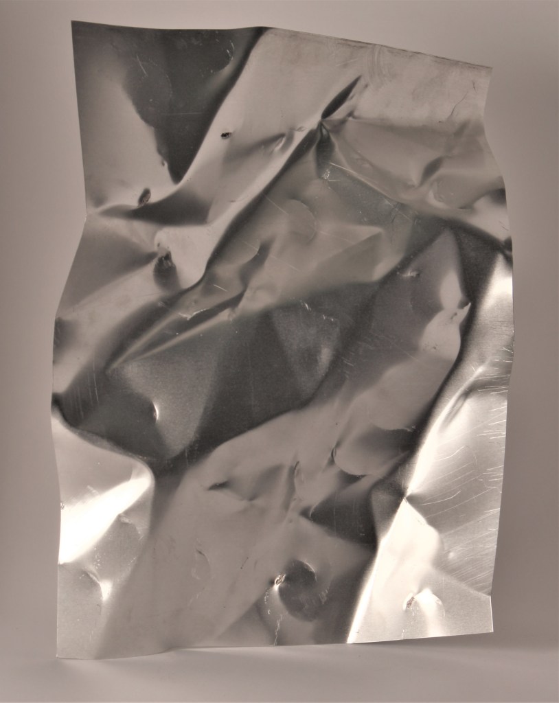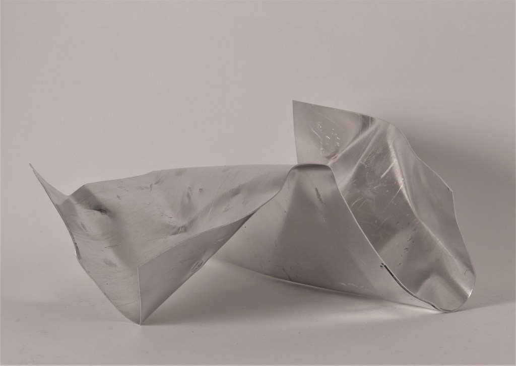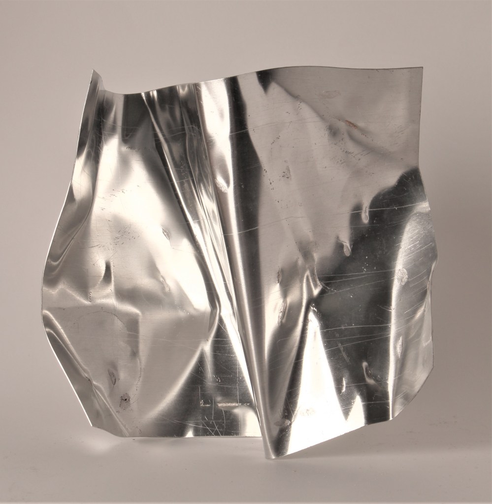 I repeated this with a larger sheet, so that I could produce finer distortions. The result resembled crumpled paper and I enjoyed that this suggested the sheet was more malleable than it was in reality, and that there had been a more manual process at play.